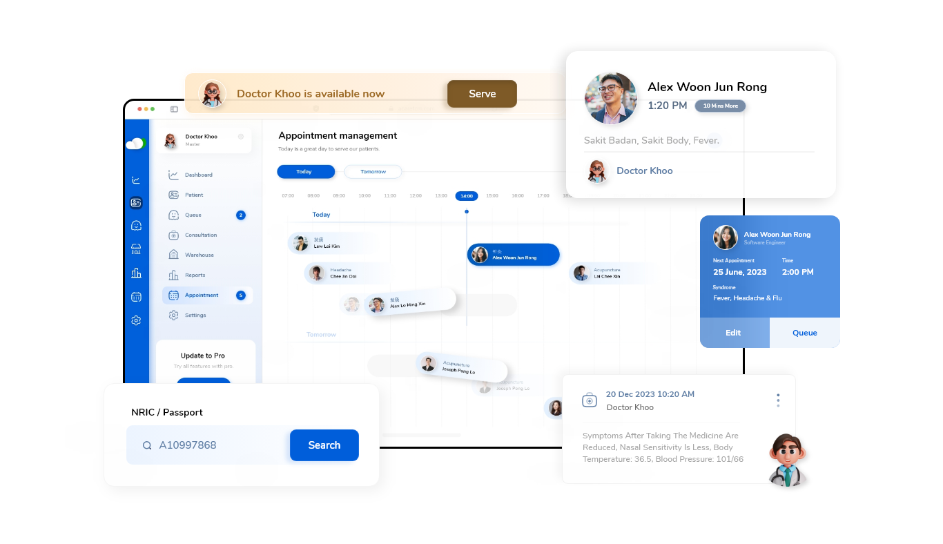 Effortlessly manage patient flow and optimize waiting times. With real-time updates, we keep you informed about patient status, ensuring smooth operations and reducing wait times. Say goodbye to congestion and hello to a streamlined clinic experience.
